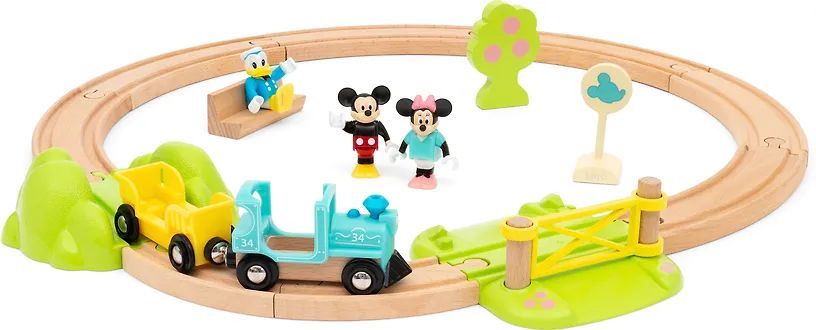 Присоединяйтесь к Микки, Минни Маус и Дональду Даку в приключении по деревянным железнодорожным путям. Поезд имеет знакомый дизайн BRIO и магнитные сцепления, благодаря чему он совместим с другими поездами BRIO, локомотивами и вагонами. Набор включает в себя любимых персонажей, поезд и аксессуары.<br>